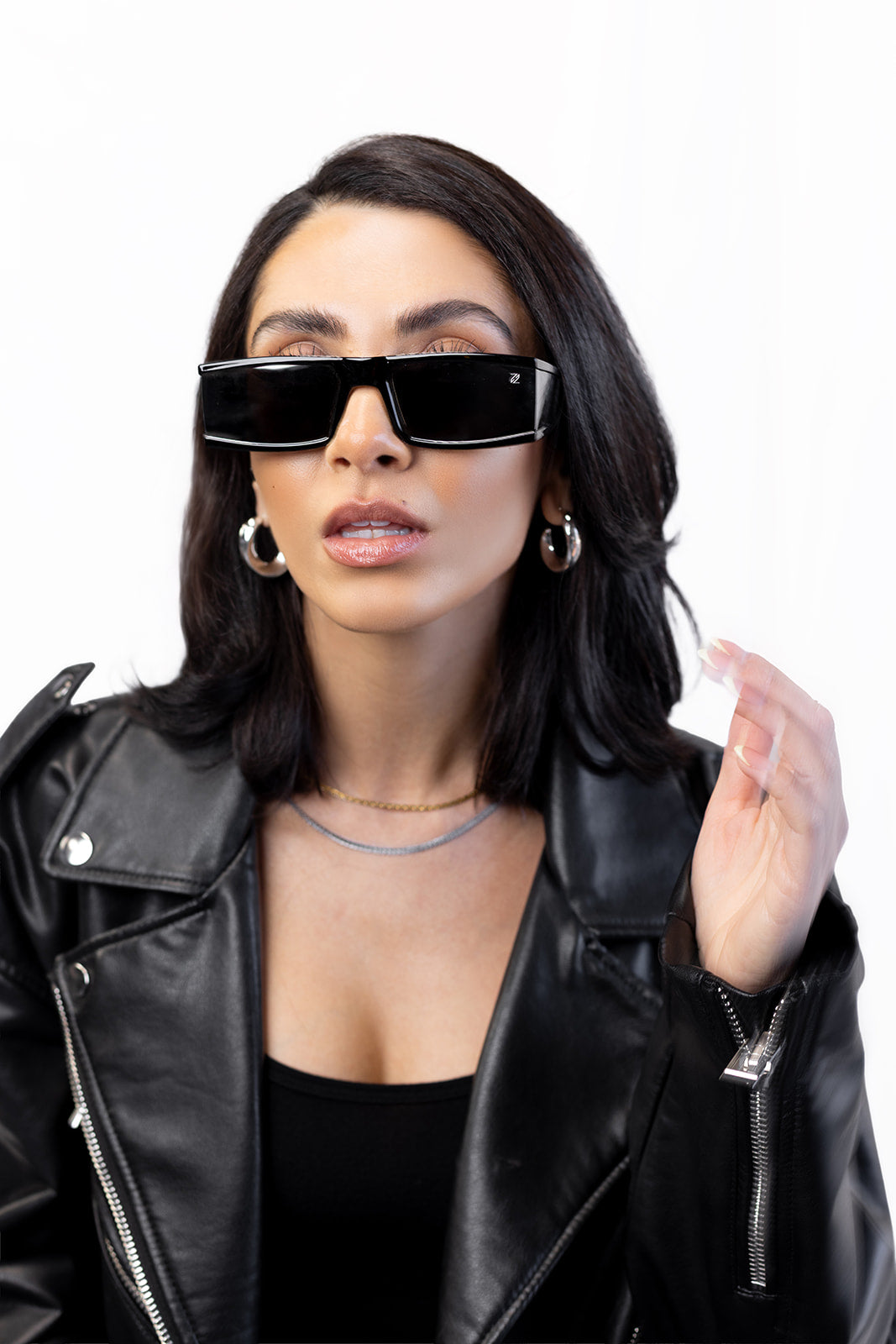 These Zaysha frames aren’t just sunglasses — they’re a statement. With a futuristic shield silhouette and wraparound side panels, they bring streetwear energy fused with luxury edge. Lightweight yet durable, crafted for all-day comfort, and finished in deep black for a clean, modern vibe.