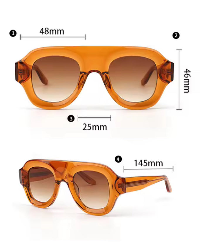 - Frame: High-grade acetate in translucent amber