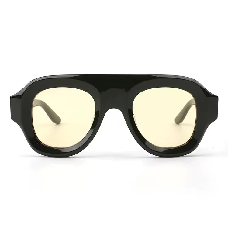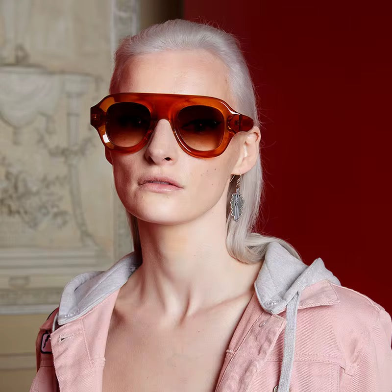 Step into the future of eyewear with Solaris Amber. These bold, oversized frames fuse retro edge with modern luxury, sculpted in a rich translucent amber acetate that glows under any light. Featuring a chunky geometric silhouette, gradient lenses, and an unapologetically fashion-forward design, Solaris Amber turns every look into a statement.